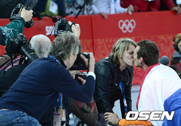금메달을 차지한 네덜란드 스테판 그루튀스가 여자친구와 키스를 하며 기뻐하고 있다./ soul1014@osen.co.kr