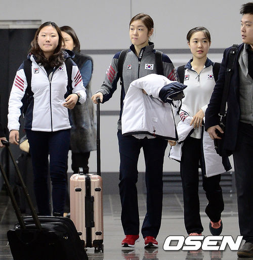 소치입성 김연아,'김해진-박소연과 함께, 든든하네'