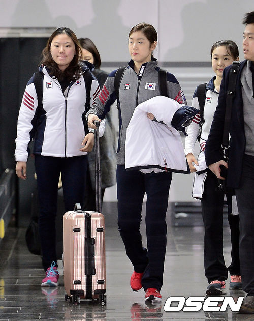 13일(한국시간) '피겨여왕' 김연아, 김해진, 박소연이 러시아 소치 아들레르 공항에 도착, 입국장을 나서고 있다.