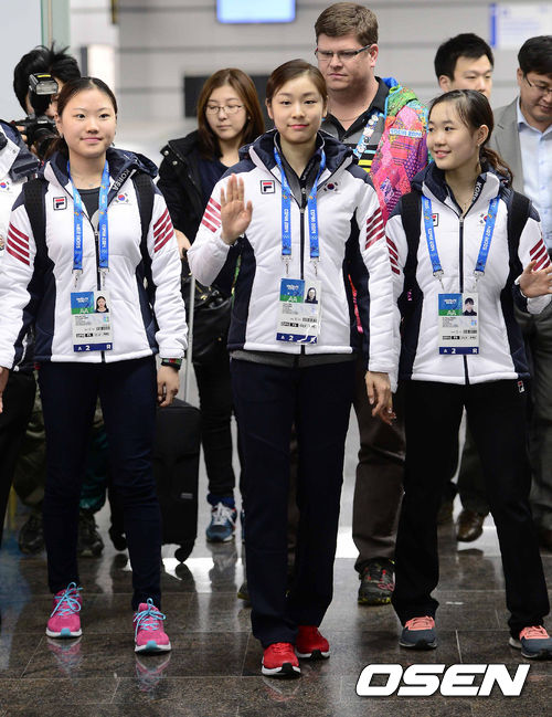 13일(한국시간) '피겨여왕' 김연아, 김해진, 박소연이 러시아 소치 아들레르 공항에 도착, 입국장을 나서고 있다.