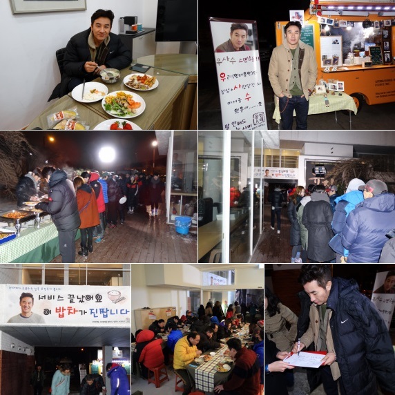 '전 세계가 주목하는 감독 오경수가 쏩니다! 서비스는끝났어요. 이 밥차가 진짭니다'라는 센스 만점의 현수막과 함께 배달된 밥차는 70인분의 뷔페밥차와 커피차가 포함돼 있었다. 팬들은 영하의 날씨에 '우사수' 배우들과 스태프들이 먹을 수 있는 보양식, 설렁탕을 더불어 뷔페 음식, 몸과 마음을 녹일 수 있는 따뜻한 각종차를 준비하는 정성을 보였다.