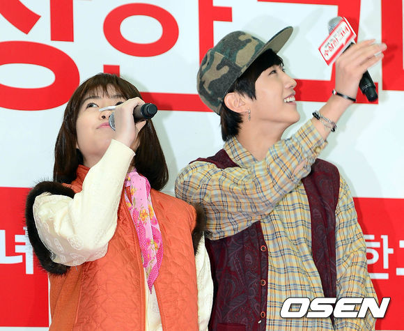 13일 오후 서울 영등포 타임스퀘어에서 열린 영화 '수상한 그녀' 500만 관객 기념 프리허그 행사에서 심은경과 진영이 팬들에게 인사를 하고 있다.