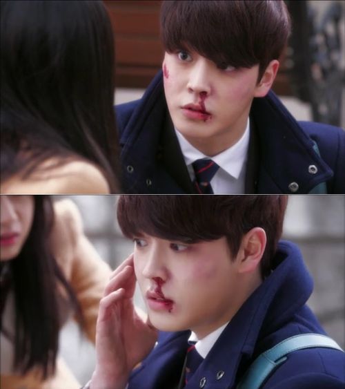 그는 남자들로부터 괴롭힘을 당하는 송이를 구하기 위해 나섰다 피투성이가 될 때까지 흠씬 맞았다. 하지만 위기의 순간에서도 큰 소리를 치는 허세로 미안해 하는 송이를 웃게 했다.