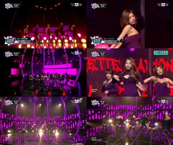 이날 보라색 의상을 맞춰 입고 무대에 오른 스텔라는 시작부터 다리를 쓸어내리는 안무로 눈길을 끌었다. 또한 이미 뮤직비디오를 통해 화제를 모은 골반을 흔드는 안무는 아찔함을 더했다.