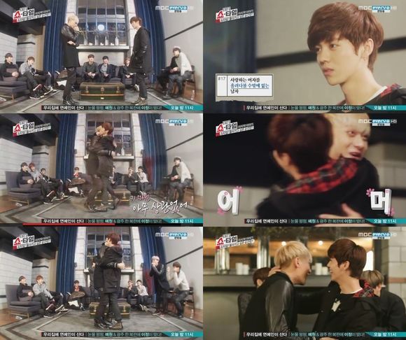 이날 루한과 수호는 각각 김탄과 차은상이 돼 연기를 했다. 그러나 수호를 그윽하게 쳐다보던 루한은 "여배우가 못 생겨서 못 하겠다"고 했고, 멤버들은 급히 수호 대신 타오를 투입했다.