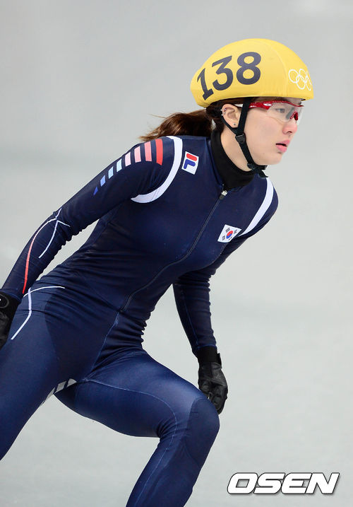 13일(한국시간)러시아 소치 아이스버그 펠리스에서 열린 2014 소치올림픽 쇼트트랙 여자 500m 준준결승, 박승희가 조 1위로 준결승에 진출하고 있다.