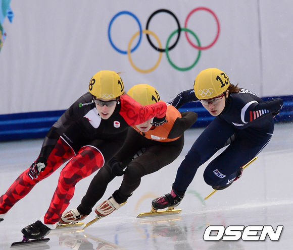 13일(한국시간)러시아 소치 아이스버그 펠리스에서 열린 2014 소치올림픽 쇼트트랙 여자 500m 준준결승, 박승희가 조 1위로 준결승에 진출하고 있다.