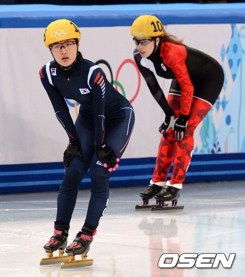 13일(한국시간)러시아 소치 아이스버그 펠리스에서 열린 2014 소치올림픽 쇼트트랙 여자 500m 준준결승, 박승희가 조 1위로 준결승에 진출하고 있다.