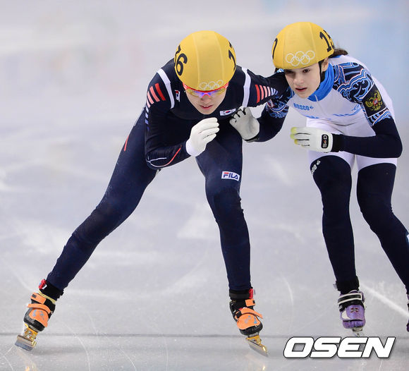 13일(한국시간)러시아 소치 아이스버그 펠리스에서 열린 2014 소치올림픽 쇼트트랙 여자 500m 준준결승, 김아랑이 경기에 임하고 있다.