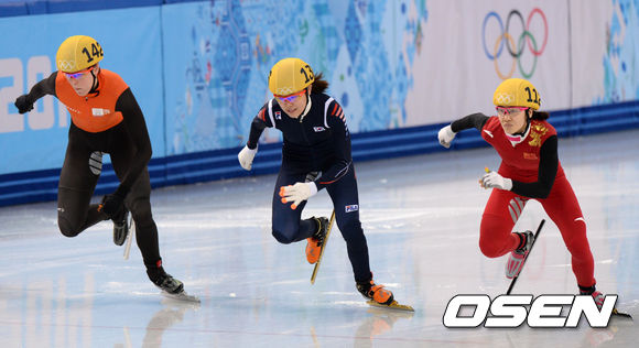 13일(한국시간)러시아 소치 아이스버그 펠리스에서 열린 2014 소치올림픽 쇼트트랙 여자 500m 준준결승, 김아랑이 경기에 임하고 있다.