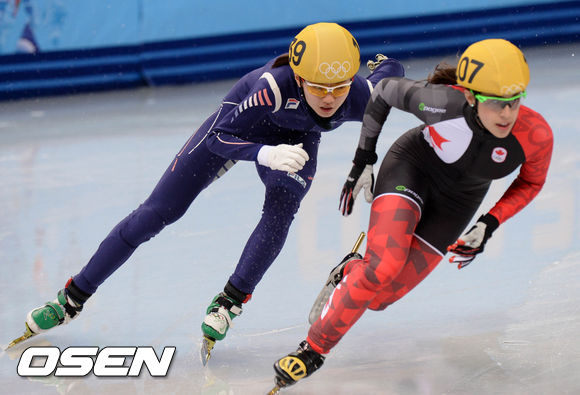 13일(한국시간)러시아 소치 아이스버그 펠리스에서 열린 2014 소치올림픽 쇼트트랙 여자 500m 준준결승, 심석희가 경기에 임하고 있다.