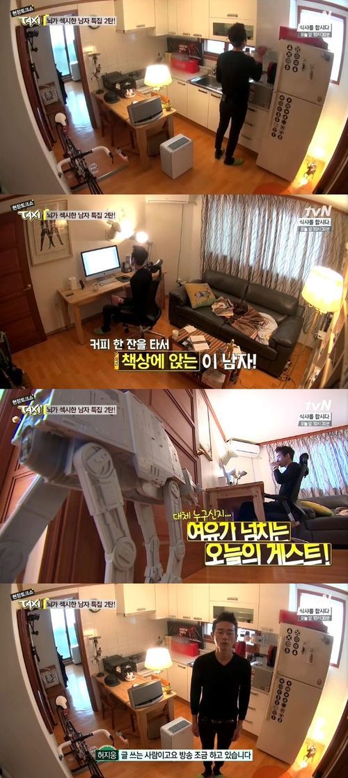 방송인 허지웅이 혼자 살고 있는 자신의 집을 공개했다.