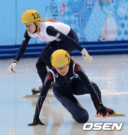 박승희가 엘리스 크리스티의 반칙에 넘어진 후 일어나 달리다 또 넘어지고 있다./soul1014@osen.co.kr