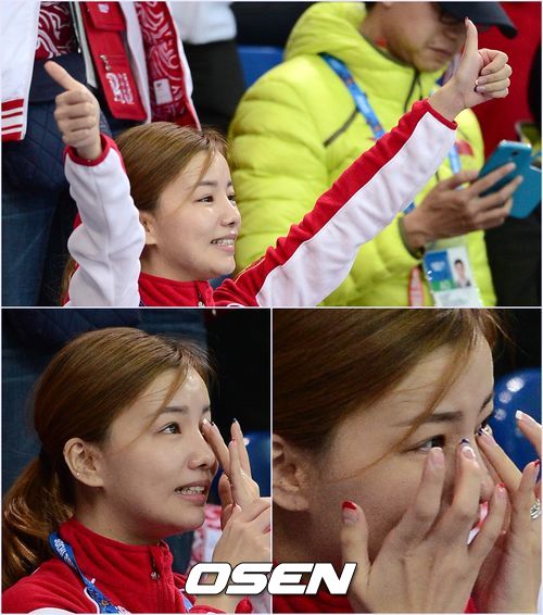 안현수의 여친인 우나리가 안현수가 결승에 진출하자 기쁨의 눈물을 보이고 있다./ soul1014@osen.co.kr