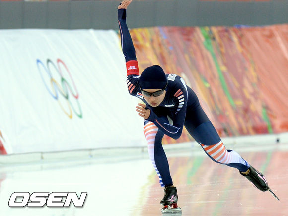 13일(한국시간)러시아 소치 아들레르 아레나에서 열린 2014 소치올림픽 스피드스케이팅 여자 1000m 경기, 박승주가 경기에 임하고 있다.