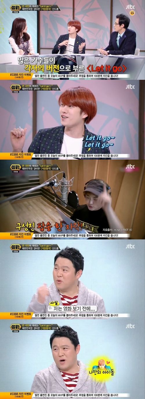 ‘썰전’ 김희철이 트로트 가수 박현빈이 부른 ‘렛 잇 고(Let it go)’ 버전을 최고로 꼽았다.