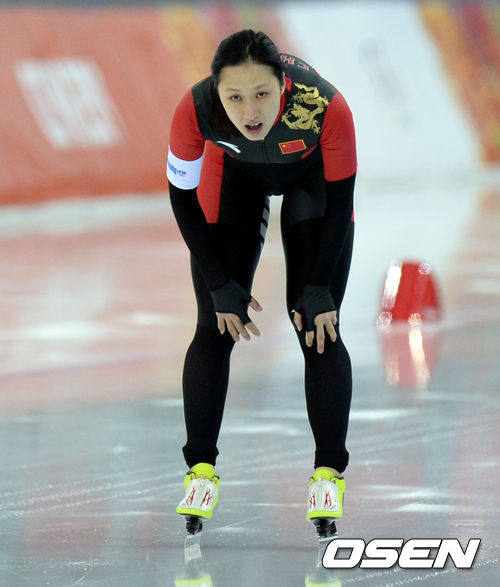 13일(한국시간)러시아 소치 아들레르 아레나에서 열린 2014 소치올림픽 스피드스케이팅 여자 1000m 경기, 장홍이 경기를 마친 후 기록을 살피고 있다.