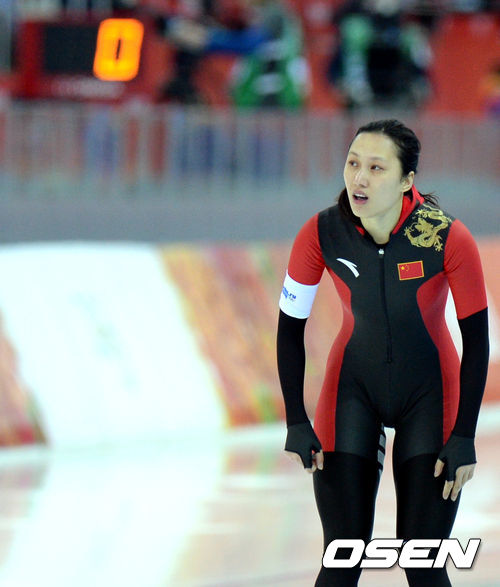 13일(한국시간)러시아 소치 아들레르 아레나에서 열린 2014 소치올림픽 스피드스케이팅 여자 1000m 경기, 장홍이 경기를 마친 후 기록을 살피고 있다.