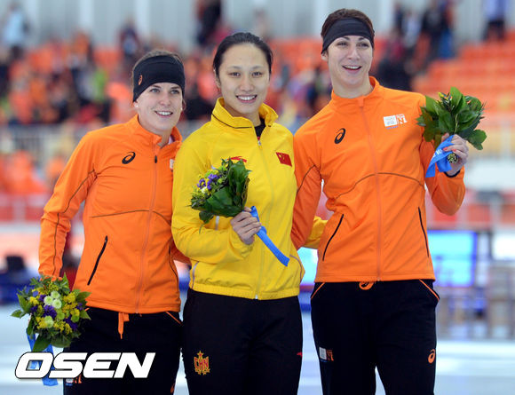 경기를 마치고 1위 장홍(중국), 2위 이리네 부스트(네덜란드), 3위 마고 보어(네덜란드)가 포토타임을 갖고 있다. /soul1014@osen.co.kr