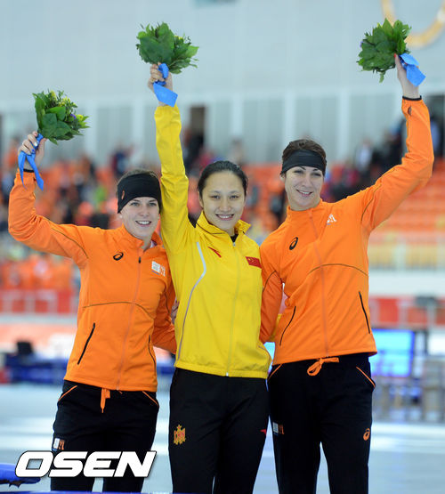 경기를 마치고 1위 장홍(중국), 2위 이리네 부스트(네덜란드), 3위 마고 보어(네덜란드)가 포토타임을 갖고 있다. /soul1014@osen.co.kr