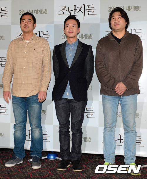 14일 오후 서울 행당동 CGV 왕십리에서 열린 영화 '조난자들' 언론배급시사회에서 전석호, 오태경, 최무성(왼쪽부터)이 포토타임을 갖고 있다.