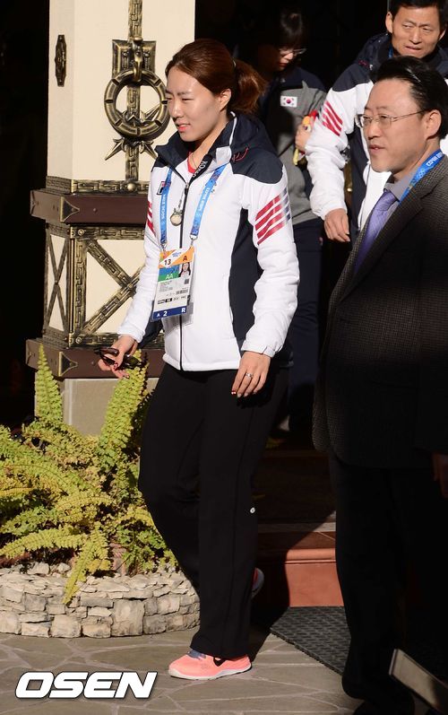 이상화(25, 서울시청)가 14일(이하 한국시간) 러시아 소치 아들레르 시내에 위치한 코리아 하우스에서 기자회견을 하기 위해 입장하고 있다.