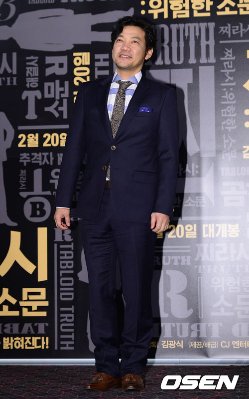 14일 오후 서울 행당동 CGV 왕십리에서 열린 영화 '찌라시:위험한 소문' 언론배급시사회에서 정진영이 포토타임을 갖고 있다.
