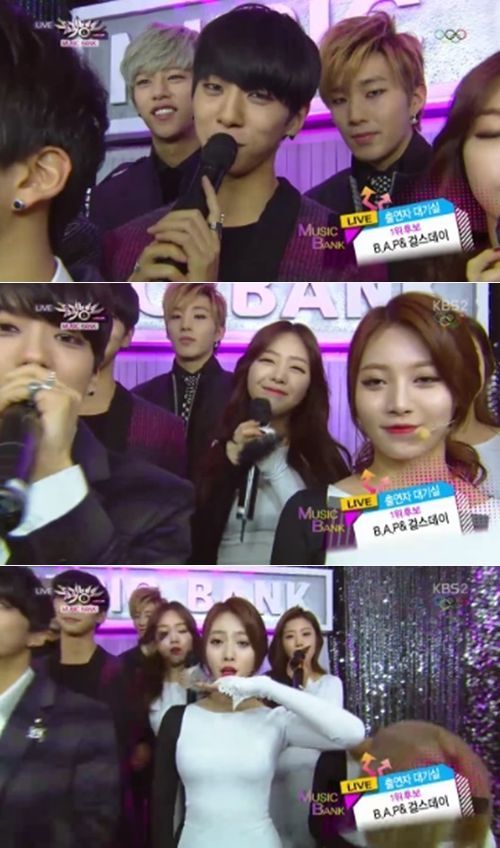 이날 B.A.P는 신곡 '1004'로 걸그룹 걸스데이 '썸씽'과 1위 후보에 올랐다.