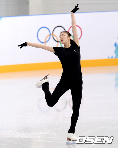 김연아가 14일(한국시간) 러시아 소치 해안클러스터 올림픽파크 피겨스케이팅 트레이닝 센터에서 훈련을 하고 있다.