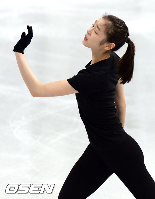 김연아가 14일(한국시간) 러시아 소치 해안클러스터 올림픽파크 피겨스케이팅 트레이닝 센터에서 훈련을 하고 있다.