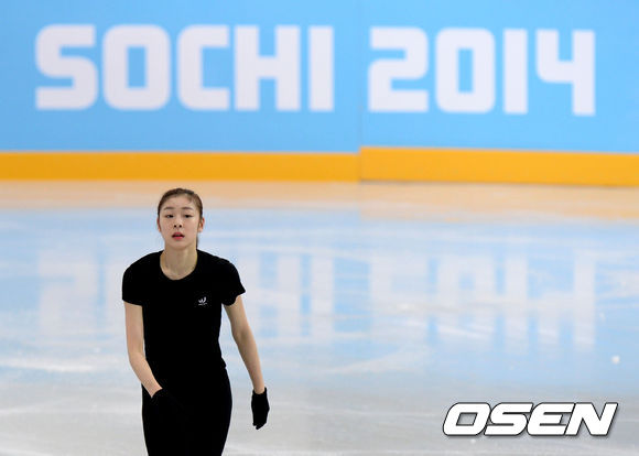 김연아가 14일(한국시간) 러시아 소치 해안클러스터 올림픽파크 피겨스케이팅 트레이닝 센터에서 훈련을 마친 후 생각에 잠겨 있다.
