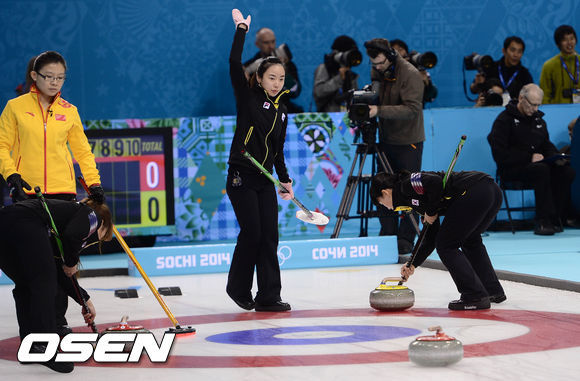 신미성(36)과 김지선(28) 이슬비(26) 김은지(25) 엄민지(23, 이상 경기도청)으로 구성된 여자 컬링대표팀(세계랭킹 10위)은 14일(한국시간) 러시아 소치에 위치한 아이스 큐브 컬링 센터에서 컬링 라운드 로빈 세션 7 중국(5위)과 경기서 6엔드까지 3-6을 기록하고 있다.