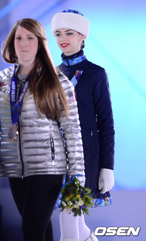 이상화와 박승희 2014 소치올림픽 메달 세레모니 행사가 진행됐던 러시아 소치 메달 프라자에서 시상 도우미의 미모가 화제이다.