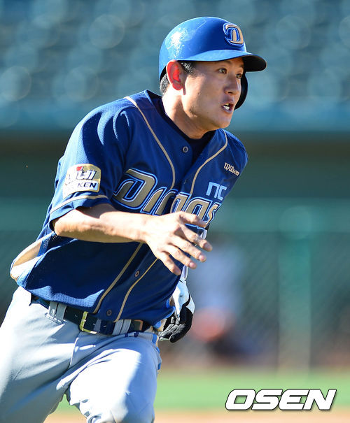 NC 손시헌이 타격 후 그라운드를 달리고 있다.