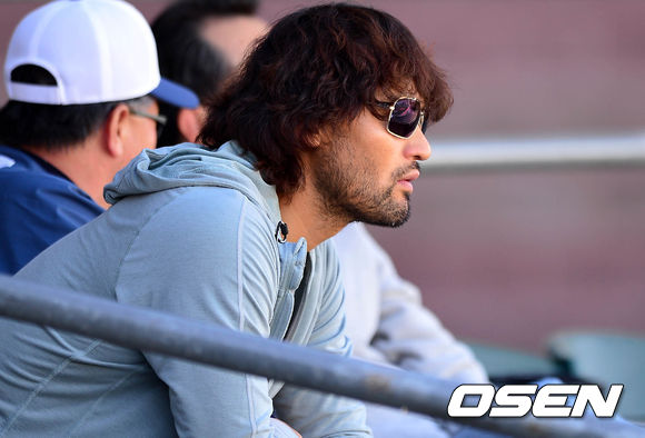 경기장을 찾은 박찬호가 경기를 바라보고 있다.