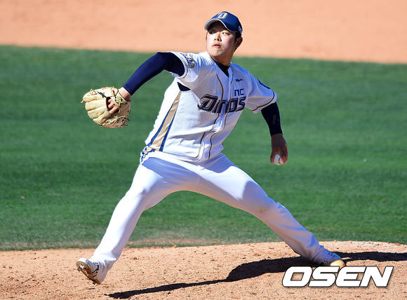 NC 손정욱이 힘차게 공을 던지고 있다.