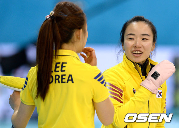 신미성(36)과 김지선(28) 이슬비(26) 김은지(25) 엄민지(23, 이상 경기도청)으로 구성된 여자 컬링대표팀(세계랭킹 10위)이 15일(이하 한국시간) 오후 러시아 소치 아이스큐브 컬링센터에서 영국과 6차전을 가졌다.