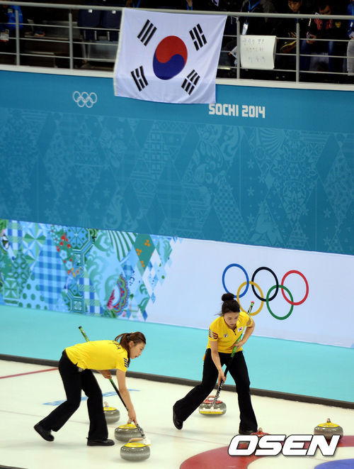 신미성(36)과 김지선(28) 이슬비(26) 김은지(25) 엄민지(23, 이상 경기도청)으로 구성된 여자 컬링대표팀(세계랭킹 10위)이 15일(이하 한국시간) 오후 러시아 소치 아이스큐브 컬링센터에서 영국과 6차전을 가졌다.