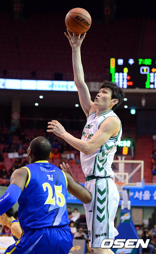 15일 오후 서울 잠실실내체육관에서 열린 '2013-2014 KB국민카드 프로농구' 서울 삼성과 원주 동부의 경기 1쿼터 김주성이 슛을 시도하고 있다.