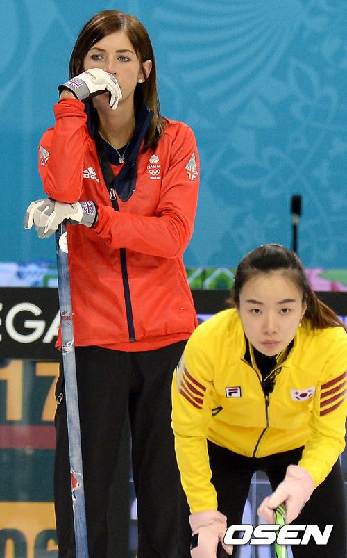 신미성(36)과 김지선(28) 이슬비(26) 김은지(25) 엄민지(23, 이상 경기도청)으로 구성된 여자 컬링대표팀(세계랭킹 10위)이 15일(이하 한국시간) 오후 러시아 소치 아이스큐브 컬링센터에서 영국과 6차전을 가졌다.