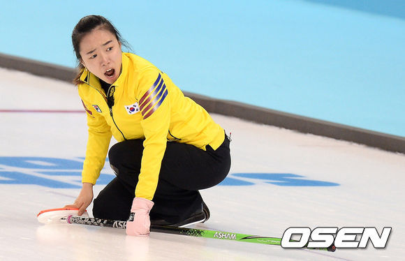신미성(36)과 김지선(28) 이슬비(26) 김은지(25) 엄민지(23, 이상 경기도청)으로 구성된 여자 컬링대표팀(세계랭킹 10위)은 15일(이하 한국시간) 오후 러시아 소치의 아이스큐브 컬링센터에서 열린 컬링 라운드 로빈 세션 8 영국과 경기서 마지막 10엔드 대거 3점을 내주면서 8-10으로 통한의 역전패를 당했다.