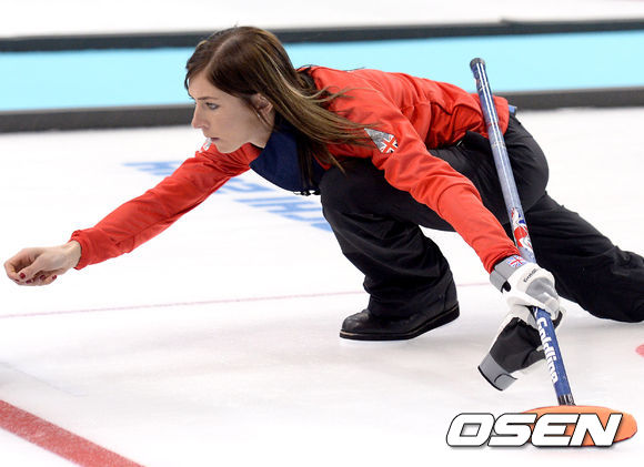 영국 컬링 대표팀 주장 이브 무어헤드가 스톤을 던지고 있다./ soul1014@osen.co.kr