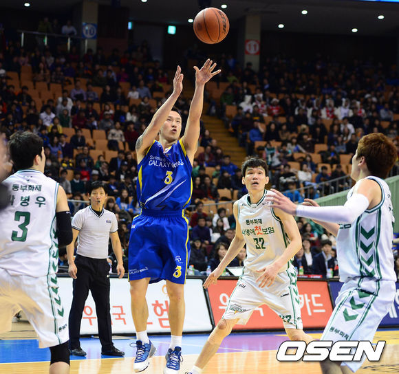 15일 오후 서울 잠실실내체육관에서 열린 '2013-2014 KB국민카드 프로농구' 서울 삼성과 원주 동부의 경기 4쿼터 김승현이 슛을 시도하고 있다.