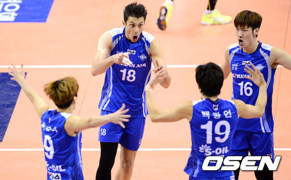 대한항공은 15일 안산상록수체육관에서 열린 NH농협 2013-2014 V리그 남자부 4라운드 마지막 경기인 러시앤캐시전에서 세트스코어 3-0(25-19, 25-18, 25-21) 완승을 거뒀다. 이날 승리를 거둔 대한항공은 12승 12패(승점 38)로 아산 우리카드 한새(승점 36)와 자리를 맞바꿔 3위로 올라섰다. 러시앤캐시는 8승 16패(승점 26)에 머물며 대한항공 상대 첫 승리를 다음 경기로 미루게 됐다.