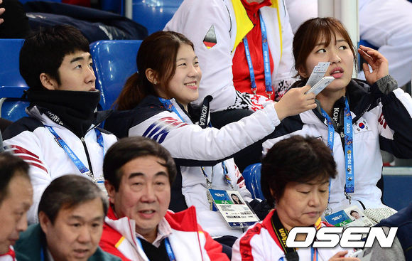 박승희를 비롯한 선수단이 관중석에서 응원을 하고 있다./ soul1014@osen.co.kr
