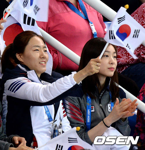 빙속여제 이상화와 피겨여왕 김연아가 미소를 지으며 응원을 하고 있다./ soul1014@osen.co.kr