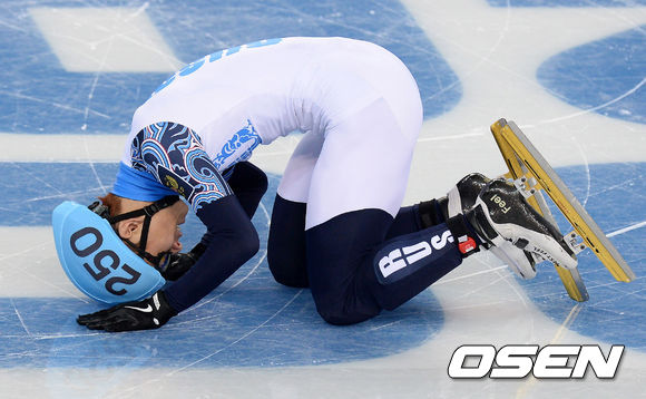 안현수가 결승선을 통과하며 기뻐하고 있다./ soul1014@osen.co.kr