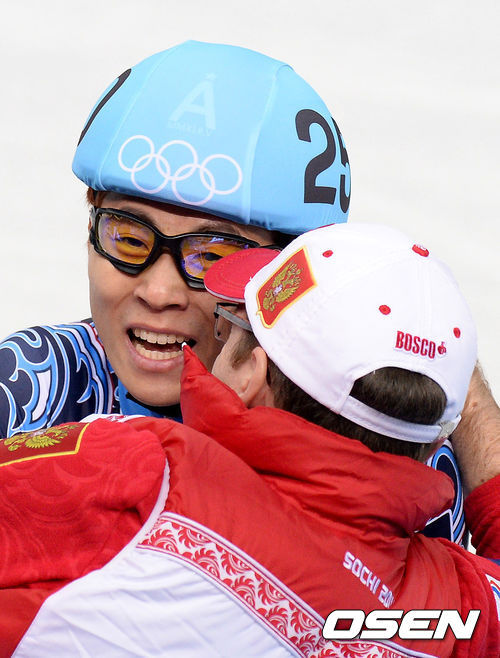 안현수가 코치와 금메달을 기뻐하고 있다./ soul1014@osen.co.kr