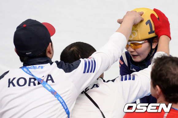코칭스태프가 심석희를 격려하고 있다./ soul1014@osen.co.kr