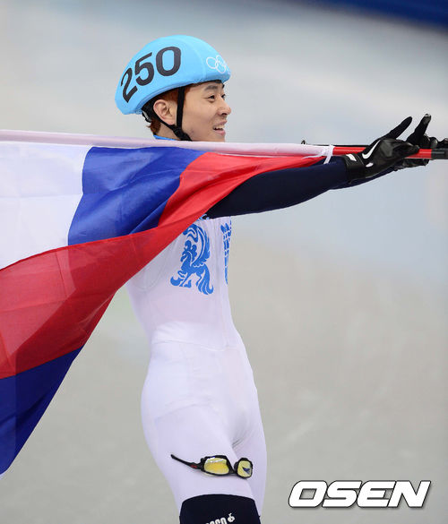 안현수가 러시아 국기를 들고 세레모니를 하고 있다./ soul1014@osen.co.kr